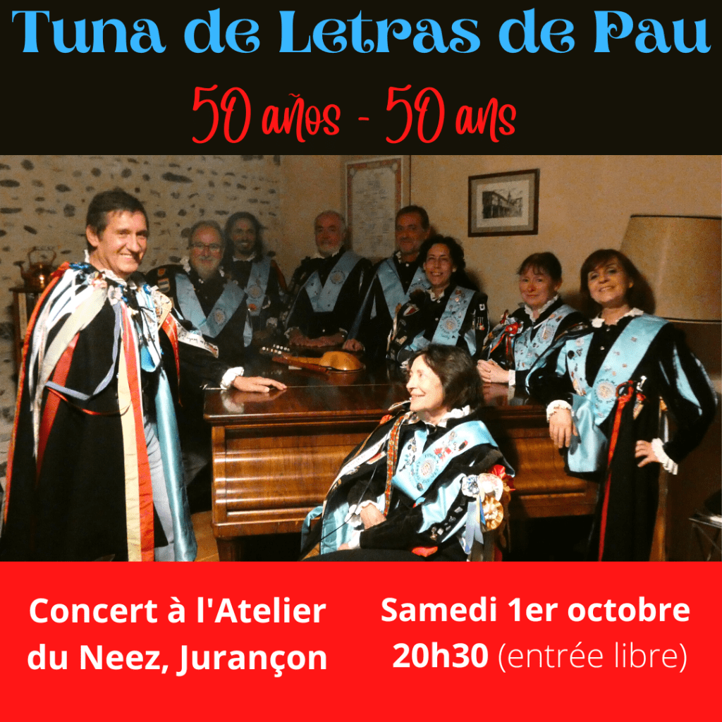 le 1er octobre 2022 la tuna de letras fete son cinquantenaire à l’atelier du neez de jurançon